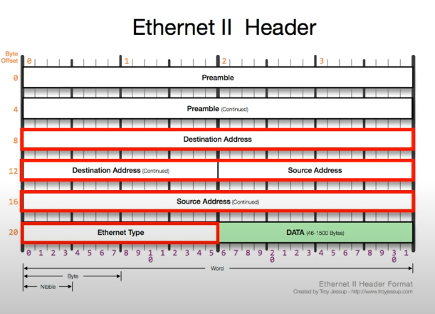 - 목적지 주소 : 데이터를 전달받을 상대방 시스템의 MAC 주소 6바이트