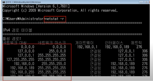 목적지 맥주소까지 확인 후 본인의 라우팅 테이블을 확인한다.