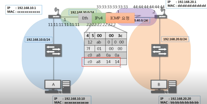 인터넷 프로토콜은 네트워크 대역이 바뀔 때마다 새로 작성된다. 다음 라우터로 이동후 네트워크 이동을 위해 이더넷 프로토콜은 재작성된다.