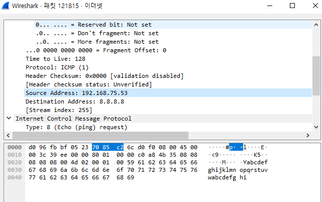 ICMP/IPv4 와이어 샤크로 살펴보기