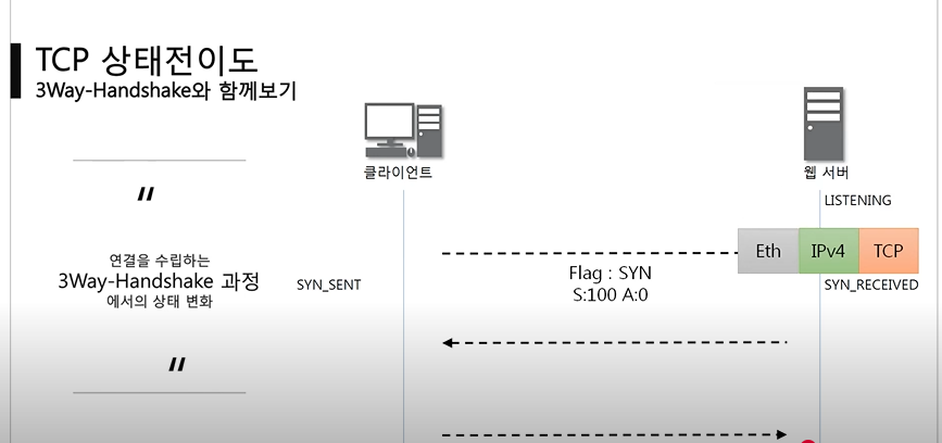 패킷을 받으면 SYN_RECEIVED 상태가 된다. 패킷을 역캡슐화하여 확인 후 다시 패킷을 만들어 응답을 보낸다.
