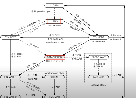 가장 중요한 LISTEN 상태와 ESTABLISHED 상태에 대해 알아보자.