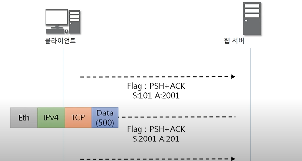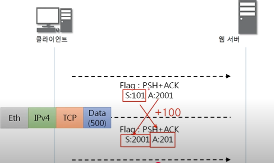 시퀀스랑 Ack 값을 같이 셋팅을 하여 보내고 시퀀스 번호랑 A 번호를 같이 보내게 된다.