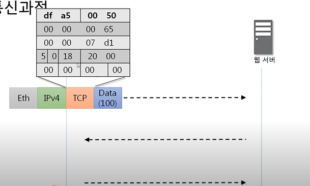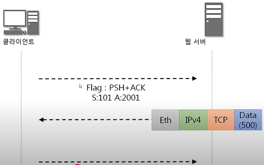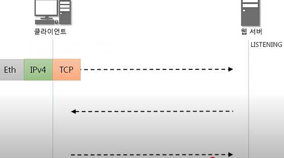 클라이언트가 패킷을 만들어 요청을 보낸다. TCP 인캡슐러레이션 -> IP 인캡슐레이션 -> Eth 인캡슐레이션을 하여 보낸다.