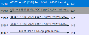 와이어 샤크로 테스트시 초기 요청 SYN , (SYN, ACK) , ACK 로 연결을 수립하는 하는 것을 볼 수 있다.