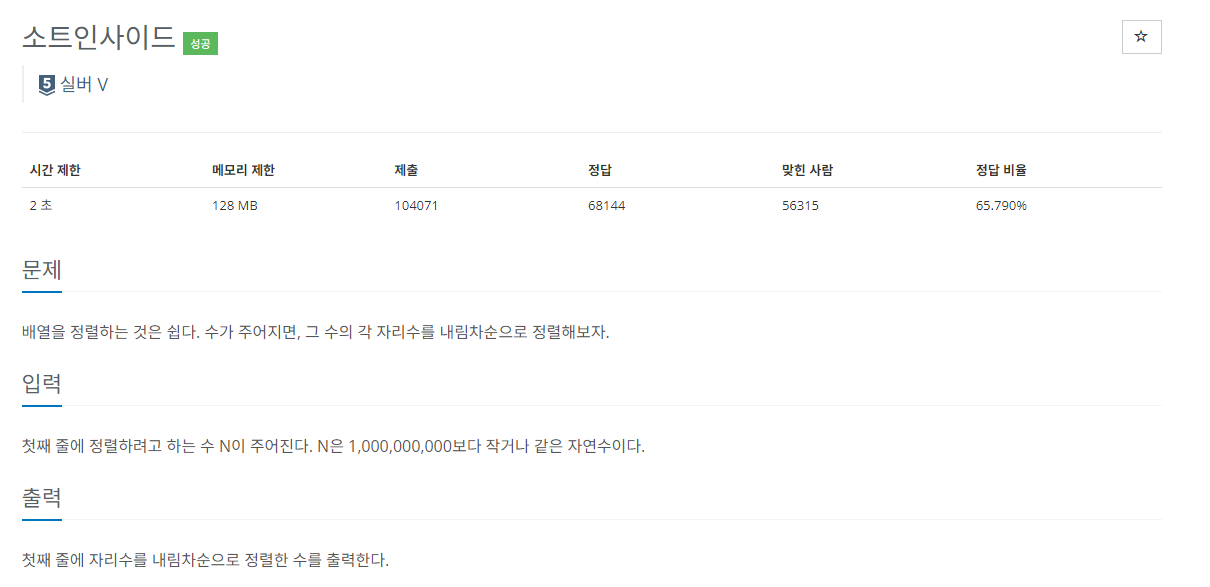 해당 문제는 int 배열을 만들어 오름차순 정렬을 하면된다.