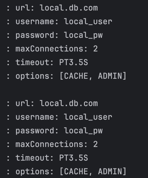 - env.getProperty("my.datasource.etc.timeout", Duration.class): 문자를 Duration(기간)으로 변환