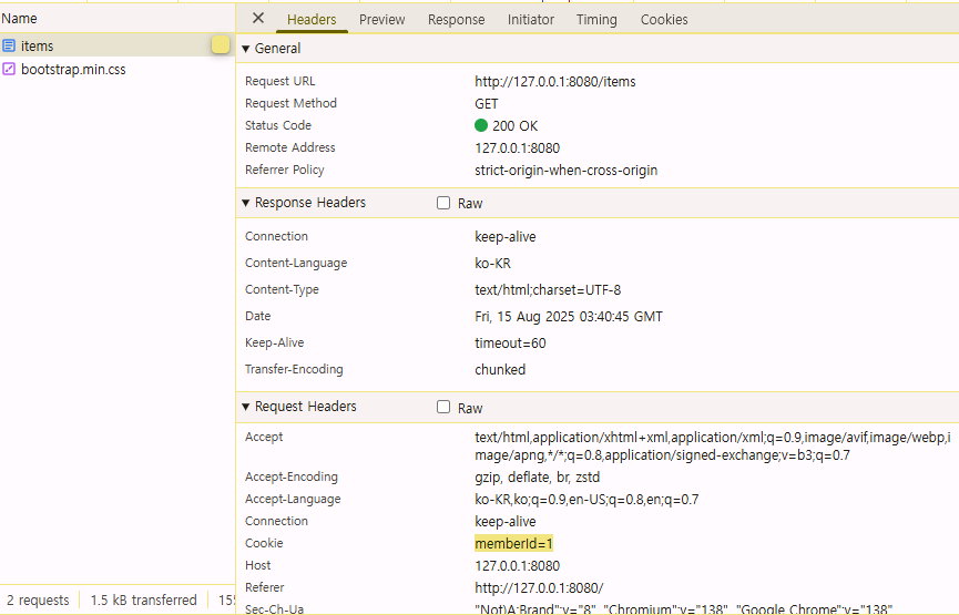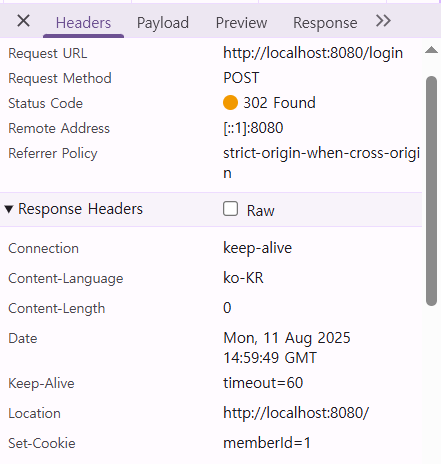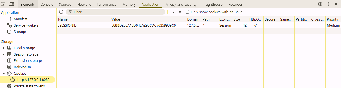 JSESSIONID 쿠키가 적절하게 생성되는 것을 확인하자.