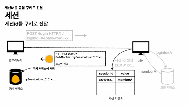- 클라이언트는 쿠키 저장소에 mySessionId 쿠키를 보관한다.