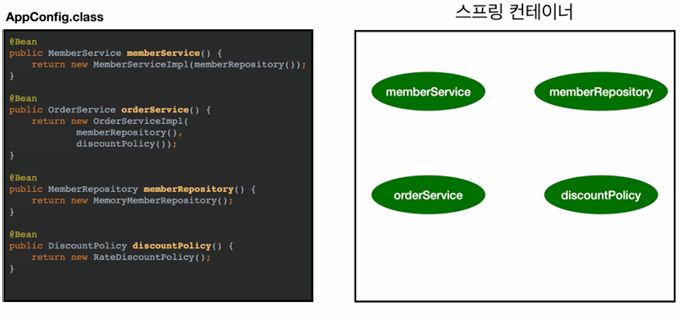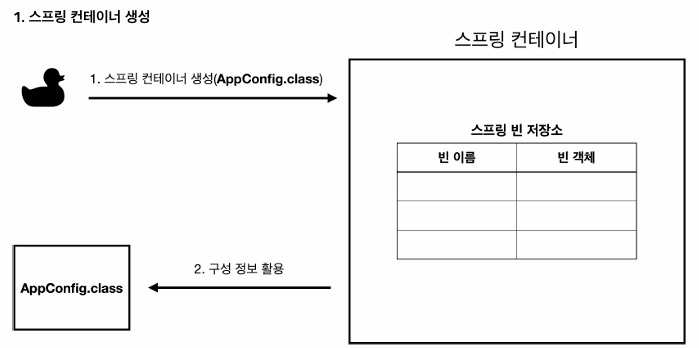 - 스프링 컨테이너는 파라미터로 넘어온 설정 클래스 정보를 사용해서 스프링 빈을 등록한다.