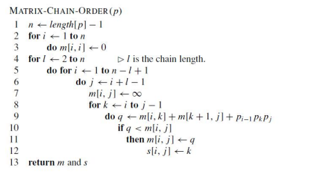 M [3,5] = min (M [3][3] + M [4][5] + p2 * p1 * p5 = 0 + 1680+ 3*12* 7= 1932