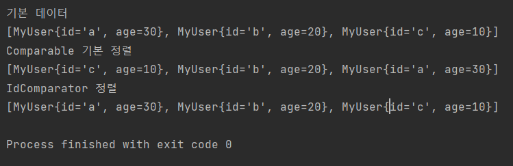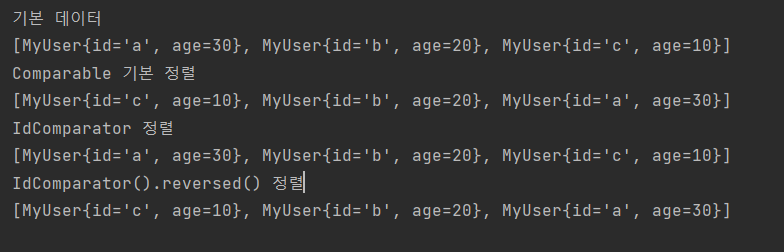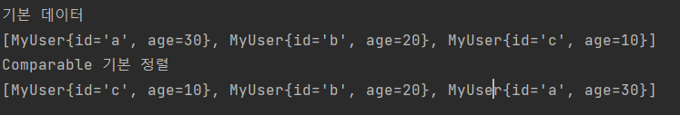 - MyUser 클래스의 기본 정렬방식을 나이 오름차순으로 정한 것이다.