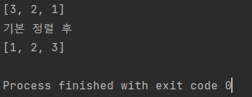 - 하지만 이 방식보다는 객체 스스로 정렬 메서드를 가지고 있는 list.sort() 사용을 더 권장한다. 참고로 둘의 결과는 같다.