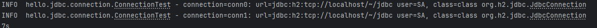 2025-01-11 03:47:18 INFO h.jdbc.repository.MemberRepositoryV1 - get connection=HikariProxyConnection@1658020779 wrapping conn0: url=jdbc:h2:tcp://localhost/~/jdbc user=SA, class=class com.zaxxer.hikari.pool.HikariProxyConnection