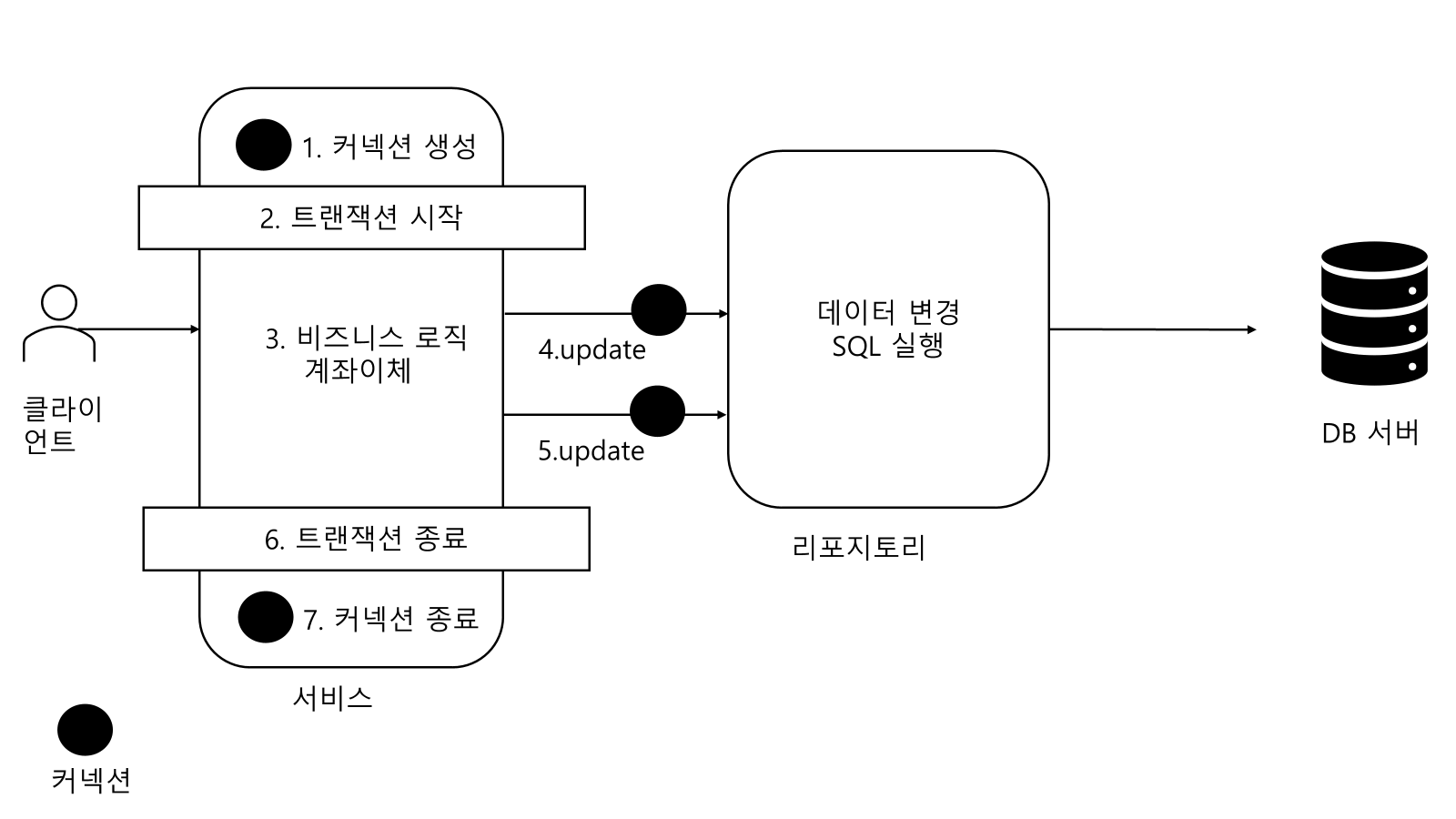 - 트랜잭션을 시작하려면 커넥션이 필요하다.
