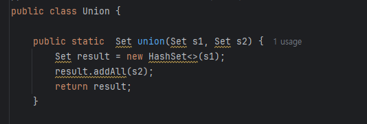 public static <E> Set<E> union(Set<E> s1, Set<E> s2) {